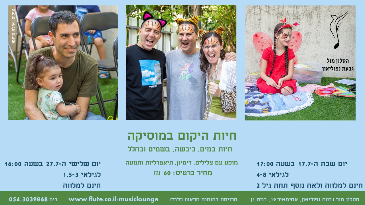 שלום לכולכם, המופע הבא בסלון ביום שלישי בשעה 16:00 מיועד לפעוטות ולילדים קטנטנים. הוא מופע שנכתב בידי ילדה עבור ילדים. אופיע בו יחד עם שני אמנים נהדרים – המוסיקאי עדי זילברברג והשחקן ארז גרוסברג. המופע באויר הפתוח בחצר, וכתבה אותו הבת שלי כשהיתה בת 10. לכל אחד מ-12 היצורים או החיות במופע, היא כתבה תיאור מעניין ביותר. הנה תיאור האריה