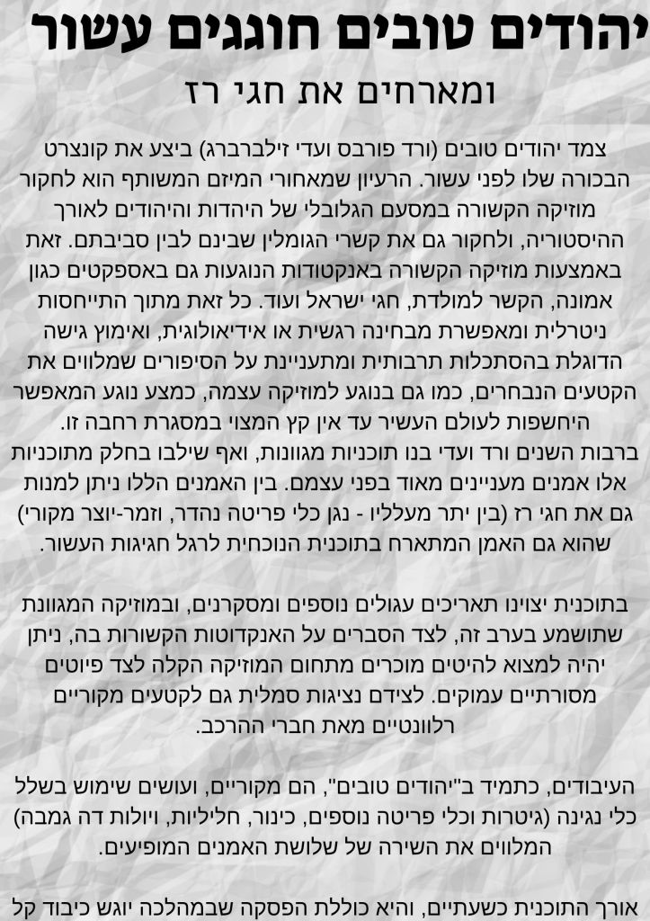 “Good Jews” in a series of concerts with Hagai Raz, celebrating a decade of activity….
