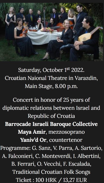 שמח להופיע עם הבארוקדה בקונצרט חגיגי בקרואטיה. כל הפרטים בפוסטר המצורף