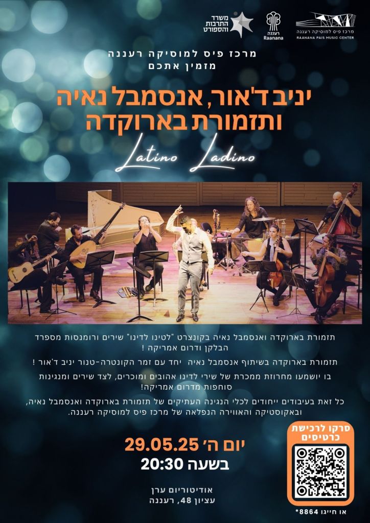 אגב, הסיבה שלא אוכל להשתתף בקונצרט הנוסף של אנסמבל נוריה היא משום שכבר “נתפסתי” ע”י בארוקדה. אז – לטידו-לדינו הותיקה והאהובה, בכיכובו של יניב ד’אור, חוזרת לשלושה מופעים: ב-29.5 ברעננה, כפי שתוכלו לראות בפרסום בתמונה להלן, ולשני מופעים נוספים, ב-5.6 בחבל אשכול, וב-7.6 בסביון. פרטים לגביהם צפויים להתפרסם בהמשך